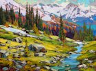 "Moving Boulders and Trees - McArthur Lake at Lake O'Hara" Acrylic on Canvas, 24" x 48" SOLD